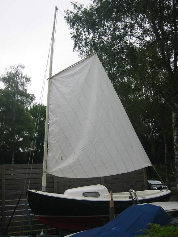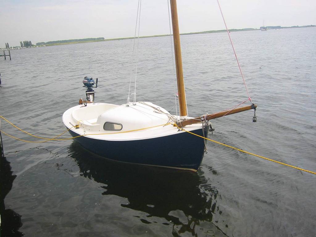 dus geen fok en grootzeil maar een emmertuigje, zoals een 12 voets jol