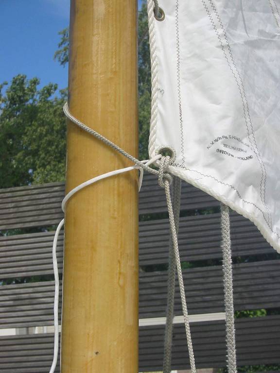 het grootzeil wordt een sprietzeil, niet groot, maar om te spelevaren